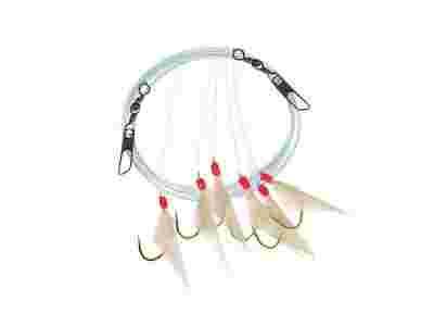 Zestaw do łowienia śledzi. W komplecie sześć troków ze sztuczną przynętą i ostrymi hakami.