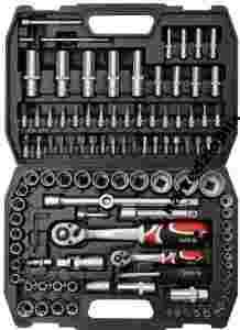Profesjonalny zestaw narzędziowy, który został opracowany pod kątem potrzeb wyspecjalizowanych serwisów samochodowych i mechanicznych. Klucze nasadowe, jak i napęd nasadek, zostały wykonane z wytrzymałej, narzędziowej stali chromowo-wanadowej CrV 50BV3. Nasadki wykonano metodą kucia matrycowego, a przed procesem hartowania poddano je kalibracji za pomocą precyzyjnych przymiarów i urządzeń kontrolnych. Nasadki wyposażone w system AS-Drive, zwiększający maksymalny moment o 25%, przy pełnej ochronie obrzeży nakrętek, nasadki z dwutonowym wykończeniem powierzchni. W skład zestawu wchodzą również bity wykonane z twardej stali S2. Zestaw umożliwia pracę wymagającą bardzo dużych obciążeń i precyzji, pozwala wykonywać wiele czynności serwisowych związanych z odkręcaniem i przykręcaniem połączeń gwintowych o różnych rozmiarach nominalnych. Grzechotki posiadają trójkomponentową rękojeść oraz 72 zęby (skok roboczy 5 stopni).