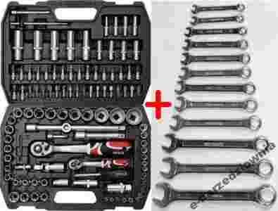 Profesjonalny zestaw narzędziowy, który został opracowany pod kątem potrzeb wyspecjalizowanych serwisów samochodowych i mechanicznych. Klucze nasadowe, jak i napęd nasadek, zostały wykonane z wytrzymałej, narzędziowej stali chromowo-wanadowej CrV 50BV3. Nasadki wykonano metodą kucia matrycowego, a przed procesem hartowania poddano je kalibracji za pomocą precyzyjnych przymiarów i urządzeń kontrolnych. Nasadki wyposażone w system AS-Drive, zwiększający maksymalny moment o 25%, przy pełnej ochronie obrzeży nakrętek, nasadki z dwutonowym wykończeniem powierzchni. W skład zestawu wchodzą również bity wykonane z twardej stali S2. Zestaw umożliwia pracę wymagającą bardzo dużych obciążeń i precyzji, pozwala wykonywać wiele czynności serwisowych związanych z odkręcaniem i przykręcaniem połączeń gwintowych o różnych rozmiarach nominalnych. Grzechotki posiadają trójkomponentową rękojeść oraz 72 zęby (skok roboczy 5 stopni).