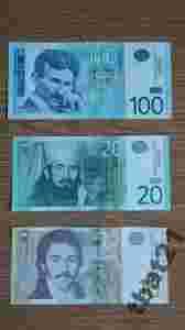 ZESTAW 10, 20, 100 DINARÓW - SERBIA - stan UNC