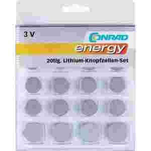 Zestaw 20 baterii guzikowych, litowych Conrad Energy
