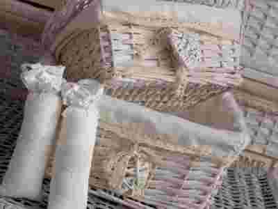 Stan: Nowy Materiał wykonania: wiklina Długość (dłuższy bok) w cm: 30 Wysokość: 16 [см] Szerokość (krótszy bok) w cm: 24 Kolor: biały, beżowy