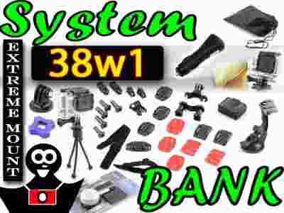 Zestaw składa się z 38 elementów, pozwalających na zamocowanie kamery niemal na każdej powierzchni, przy każdym przedmiocie.