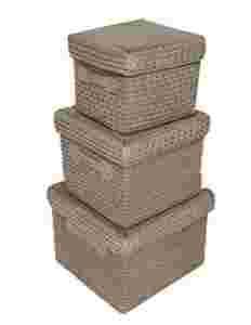 Zestaw 3 koszy z pokrywkami - słomiane.