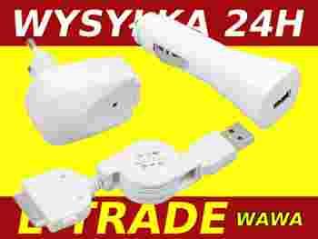 ZESTAW 3w1 ŁADOWARKA iPOD iPHONE 230V 12V USB Wawa