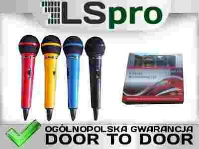 Zestaw 4 kolorowych przewodowych mikrofonów (czarny, czerwony, żółty, niebieski) z tworzywa sztucznego z przewodami i końcówką Jack. Zestawy nowe, oryginalnie zapakowane, z ogólnopolską gwarancją polskiego dystrybutora. W komplecie przewody zakończone wejściem typu Duży Jack (6,35mm).