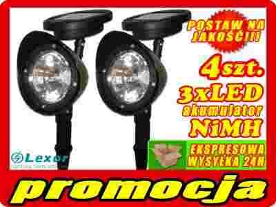 ZESTAW 4szt LAMPA OGRODOWA SOLARNA REFLEKTOR 3xLED