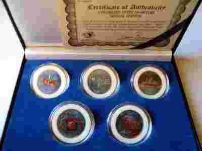 ZESTAW 5 KOLORYZOWANYCH MONET