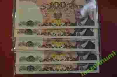 ZESTAW 5 x 100 zł 1986 s. MU UNC
