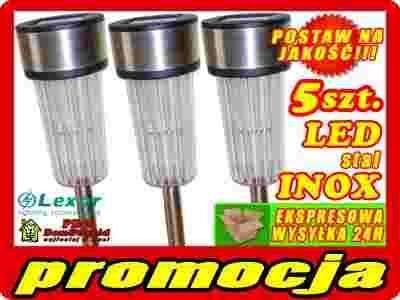 ZESTAW 5szt LAMPY OGRODOWE SOLARNE STAL INOX LED