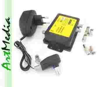 Opis Rozgałęźnika: Bardzo mały współczynnik szumów i zakłóceń! Regulacja wzmocnienia pozwala na precyzyjne ustawienie warunków pracy rozdzielacza! Przeznaczony do małych domowych instalacji antenowych Rozgałęźnik pozwala na podłączenie do jednej anteny ( instalacji antenowej ) czterech odbiorników TV. Posiada na wejściu regulację, która umożliwia ustawienie optymalnego poziomu sygnału na wyjściach. Rozdzielacz może być stosowany zarówno z anteną aktywną ( ze wzmacniaczem ) jak i anteną pasywną ( bez wzmacniacza ), napięcie na wyjście antenowe nie jest wtedy podawane. W przypadku stosowania anteny aktywnej zasilacz z rozgałęźnika zasila jednocześnie wzmacniacz w antenie. Zestaw zawiera odpowiedni zasilacz antenowy. Parametry rozdzielacza: częstotliwość pracy: 40 - 860 Mhz wzmocnienie: 0 - 10 dB tłumienie odsprzężenia: 20 dB zasilanie: 12 V / 50 mA h Rozgałęźniki sygnału z serii ART charakteryzują się wyjątkowo poprawną pracą, mają mały współczynnik szumów. Druga zaleta to możliwość zasilania go zasilaczem umieszczonym bezpośrednio przy jednym z odbiorników wpiętym do złącza TV2. Urządzenie winno być instalowane w pomieszczeniach zamkniętych.