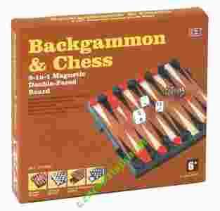 BACKGAMMON Przystępując do gry gracze wybierają kolor swoich pionków i rzucając kostką ustalają, kto z nich rozpocznie grę. Gracz rozpoczynający grę w pierwszych posunięciach pionków, wykorzystuje wynik rzutów wykonanych do ustalenia kolejności tj. wynik rzutu własnego i przeciwnika. W dalszych posunięciach obydwaj gracze rzucają za każdym razem dwiema kostkami i w posunięciach pionków uwzględniają wyniki na obu kostkach. Celem pierwszej fazy gry jest wprowadzenie wszystkich jednobarwnych pionków na 6 ostatnich pól danego kierunku posunięć - do swojego rejonu. Celem drugiej fazy jest wprowadzenie wszystkich jednobarwnych pionków ze swoich rejonów poza planszę. SZACHY Wymiar szachownicy: 165x165 mm. Szachy to strategiczna gra umysłowa. Opracowanie pierwszych zasad gry datuje się na V wiek n.e. w Indiach, czyli ponad 1500 lat temu. Zebrano liczne dowody na potwierdzenie tego, że tak było - świadczą o tym liczne wykopaliska i zapisy w starych księgach. Do Europy gra trafiła około 1000 lat temu, do Polski, około 800 lat temu. Obecnie szachy są grą znaną na całym świecie. Klasyczna partia szachów toczy się pomiędzy dwiema osobami. Szachownica, na której rozgrywana jest partia podzielona jest na 64 pola: jasne i ciemne (na przemian), nazywane umownie - białymi i czarnymi. Najważniejszą figurą w szachach jest król. Celem gry jest zamatowanie króla przeciwnika. Wygrywa ten gracz, który dokona tego pierwszy.