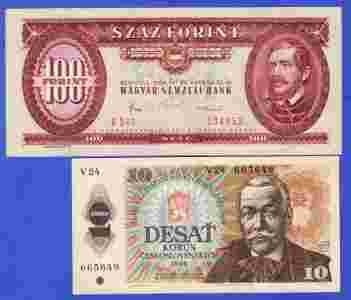 ZESTAW BANKNOTÓW 2 SZT - 100 FORINT I 10 KORON