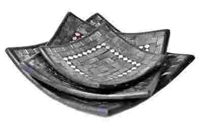 Śliczny orientalny zestaw ceramicznych mis. Rękodzieło, import Indonezja. Kolor jak na zdjęciach. Zestaw jest pięknie zdobiony szklaną mozaiką. Misa dzięki swojemu starannemu wykonaniu jest tak urocza, że sama w sobie stanowić będzie piękną ozdobę na przykład do dekoracji salonu albo przedpokoju, ale pięknie będą w niej wyglądać również na przykład pochodzące z Indii orzechy nerkowca.