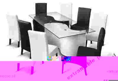 Przedstawiamy Państwu nowoczesny zestaw, w skład którego wchodzą: stół + 8 krzeseł. System posiada nowatorski design wpisujący sie w najnowsze trendy aranżacji wnętrz. Podstawa stołu to dwie nogi w kształcie litery "S", obite ekoskórą w klasycznych kolorach - czarnym i białym. Nogi zostały przymocowane na stałe do prostokątnego blatu za pomocą aluminiowych krążków. Blat wykonany z wytrzymałego, hartowanego szkła o grubości 10 mm, odpornego na tłuczenie i zarysowania. Całość bardzo łatwa do utrzymania w czystości. Zaskocz swoich gości i postaw na nowoczesne wzornictwo, które z pewnością zostanie zauważone. Powyższy zestaw to idealna propozycja zarówno do salonu, jak i do jadalni.