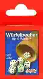 OPIS GRY: Skórzany kubek do gry w kości. Solidnie i estetycznie wykonany. Wysokość kubka: 48 mm, przekrój spód/góra: 40/50 mm. Grubość skóry 3 mm. W komplecie 6 kości do gry o boku 7 mm i zaokrąglonych rogach. Niezastąpiony dla pasjonatów gier w kości! PUDEŁKO ZAWIERA: 1 kubek do gry 6 kości 7 mm