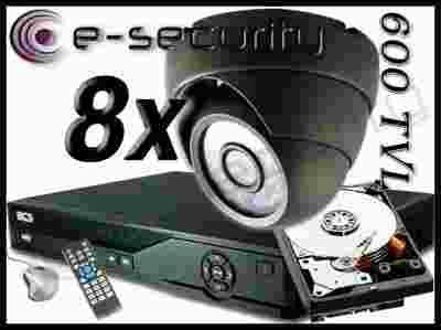 - 8 x kamera kopułkowa zewnętrzna wandaloodporna 600TVL IR