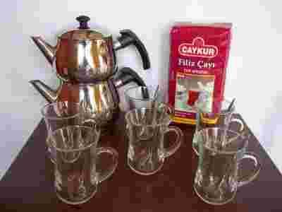 Proponujemy parzyć herbatę po turecku w „demli” (dwupoziomowe naczynie). Do mniejszego imbryka wsypujemy herbatę liściastą, do drugiego większego imbryka wlewamy zimną wodę. Stawiamy mały imbryk na większym, kiedy woda wrze zalewamy liście herbaty i uzupełniamy ubytek wody w dolnym imbryku. Ponownie zagotowujemy wodę. Do małej szklaneczki wlewamy napar z górnego imbryka i uzupełniamy wrzątkiem. W Turcji herbatę podajemy z 1-2 kostkami cukru.