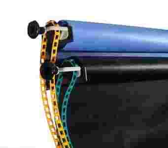 Zawieszone tło może być odwijane i zawijane za pomocą taśmy zabezpieczającej przed przypadkowym rozwinięciem.