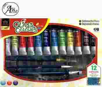 ZESTAW FARB farby DO SZKŁA 12 kolorów 12ml pędzle