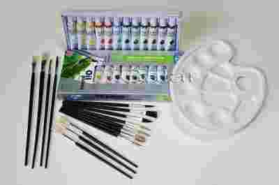 Zestaw farby akrylowe lub olejne + pedzle + Paleta
