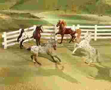 Zestaw niedużych figurek Breyer Polka Dot Parade z serii Stablemates, w którego skład wchodzą 4 koniki Appaloosa o różnym umaszczeniu. Koniki wykonane są z lekkiego tworzywa.