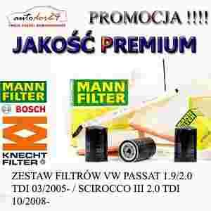 W skład zestawu wchodzą filtry czołowych światowych producentów segmentu PREMIUM takich jak MANN, BOSCH, KNECHT będących niejednokrotnie dostawcami na pierwsze wyposażenie dla koncernów motoryzacyjnych.