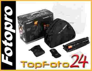 Torba jest zaprojektowana tak, aby zmieścić aparat, zewnętrzną lampę błyskową (lub dodatkowy obiektyw) oraz statyw Fotopro X4i. Zamiast statywu można schować długi teleobiektyw lub dwa zwykłe obiektywy. Statyw całkowicie chowa się w torbie, czyniąc cały zestaw wyjątkowo podręcznym.