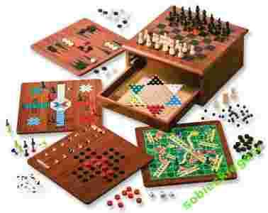 zestaw gier planszowych wykonanych z drewna