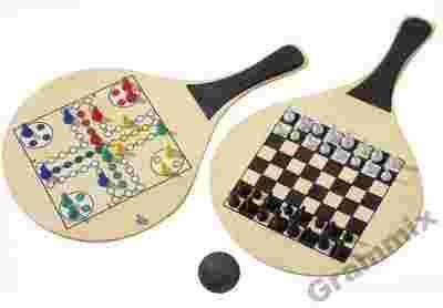 Dodatkowo na obu stronach rakietek są narysowane plansze do gier w szachy, chińczyka, młynek i backgammona.