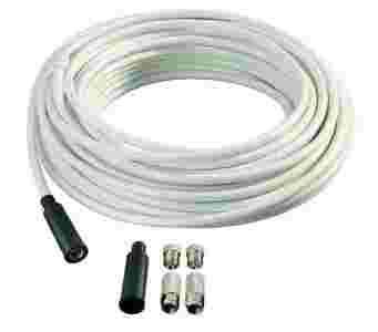 Zestaw przyłączeniowy do systemów satelitarnych: przewód z wodoszczelnymi złączami typu F. Idealne do zastosowania przy długich kablach.