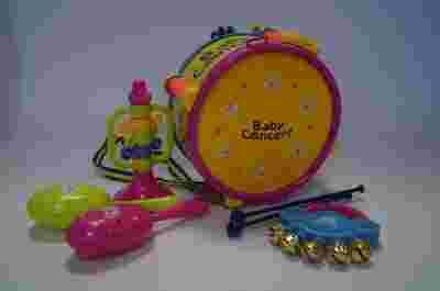 ZESTAW INSTRUMENTÓW - bębenek, trąbka, grzechotki