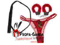 Zestaw kajdanki stringi i bicz PREZENT Panieński