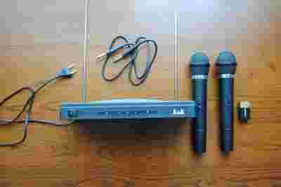 Wysokiej jakości zestaw karaoke 2 mikrofony bezprzewodowe i centralka.