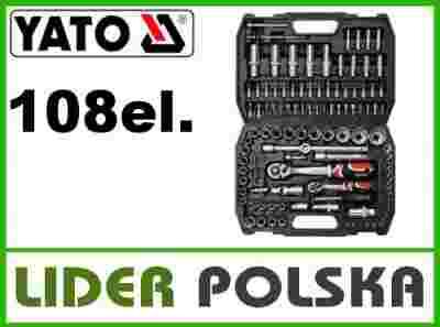 Zestaw zawiera 108 części. Nasadki i napęd nasadek w rozmiarze 1/2" 1/4" wykonane są z wytrzymałej stali narzędziowej, chromowo wanadowej CrV 50BV30. Grzechotka ze stali CrV 6140 oraz S2 posiada 72 zęby i wykonana jest wg najwyższych standardów technologicznych YATO. Umożliwia pracę wymagającą bardzo dużych obciążeń i precyzji, pozwala wykonywać wiele czynności serwisowych związanych z odkręcaniem i przykręcaniem połączeń gwintowych o różnych rozmiarach nominalnych.