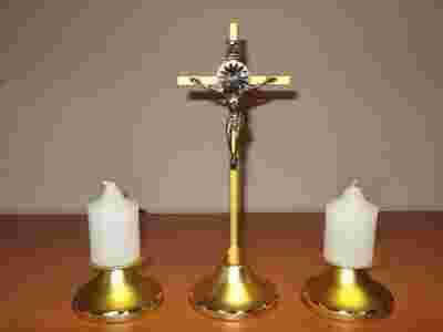 ZESTAW KOLĘDOWY KRZYŻ ZE ŚWIECZNIKAMI I ŚWIECZKAMI