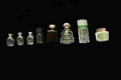 Zestaw, kolekcja małych buteleczek. Buteleczki
