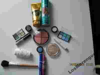 Zestaw kosmetyków, cienie, puder, balsam itd.