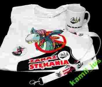 ZESTAW KOSZULKA SMYCZ KUBEK BUTTON PRZYPINKA 58MM