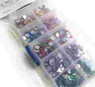 Zestaw zawiera: organizer z 750 szt. kryształków w dwóch kształtach, posegregowanych kolorystycznie.