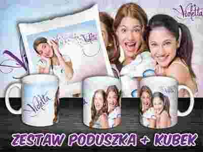 AUKCJA DOTYCZY ZESTAWU KUBEK (NADRUK+IMIĘ DZIECKA + KARTONIK) + PODUSZKA (POSZEWKA+WKŁAD) Z NADRUKOWANYM MOTYWEM VIOLETTA