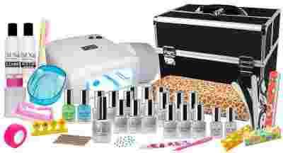 ZESTAW MANICURE HYBRYDOWY 15 LAKIER UV LAMPA KUFER