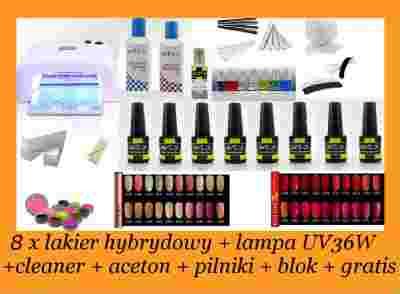 ZESTAW Manicure Hybrydowy LAKIER LAMPA CLEANER