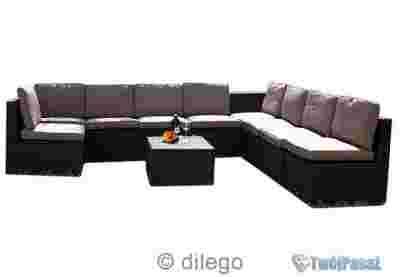 Zestaw ręcznie robionych mebli z PE rattanu przeznaczony do użytku na zew. i wew. Do zestawu zostały dołączone poduszki w kolorze ecru. Wszystkie części są również dostępne osobno.
