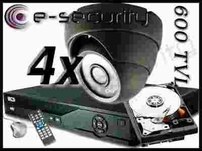 • 4 x kamera kopułkowa zewnętrzna wandaloodporna 600TVL IR