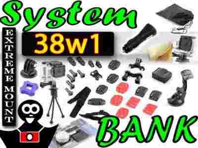 Zestaw składa się z 38 elementów, pozwalających na zamocowanie kamery niemal na każdej powierzchni, przy każdym przedmiocie.
