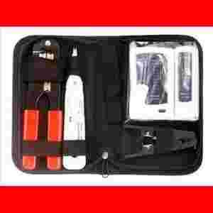 Zestaw narzędzi do budowy sieci LAN (4 elementy) - Zestaw narzędzi w praktycznym etui - Profesjonalna narzędzi do zaciskania do złącz RJ45 - Narzędzie uderzeniowe - Tester okablowania LAN(RJ45) - Narzędzie do zdejmowania izolacji - Narzędzie do zdejmowania izolacji z okablowania o średnicy: 3,2 - 9 mm - Test kabla: złe połączenie, zwarcie, otwarty obwód