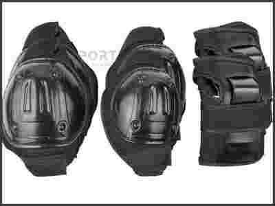 Zestaw ochraniaczy na nadgarstki, łokcie i kolana, wykonany z wysokiej jakości poliestru oraz amortyzującej pianki EVA i tworzywa PVC. Anatomiczny kształt dobrze dopasowuje się do sylwetki zapewniając wysoki poziom bezpieczeństwa.