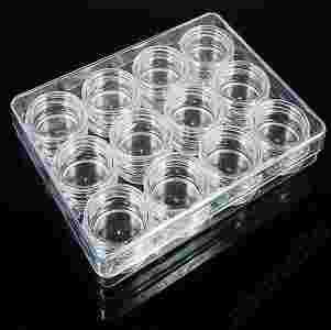 ZESTAW, ORGANIZER OZDOBY, RZĘSY, SŁOICZKI 12 SZT