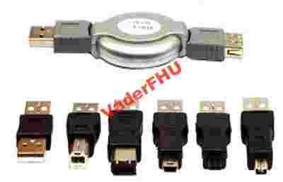 - Fabrycznie nowy,pakowany w blister Zestaw przejściówek USB to komplet najbardziej przydatnych, najczęściej wykorzystywanych końcówek USB wraz z wygodnym rozwijanym kablem USB - przedłużaczem.